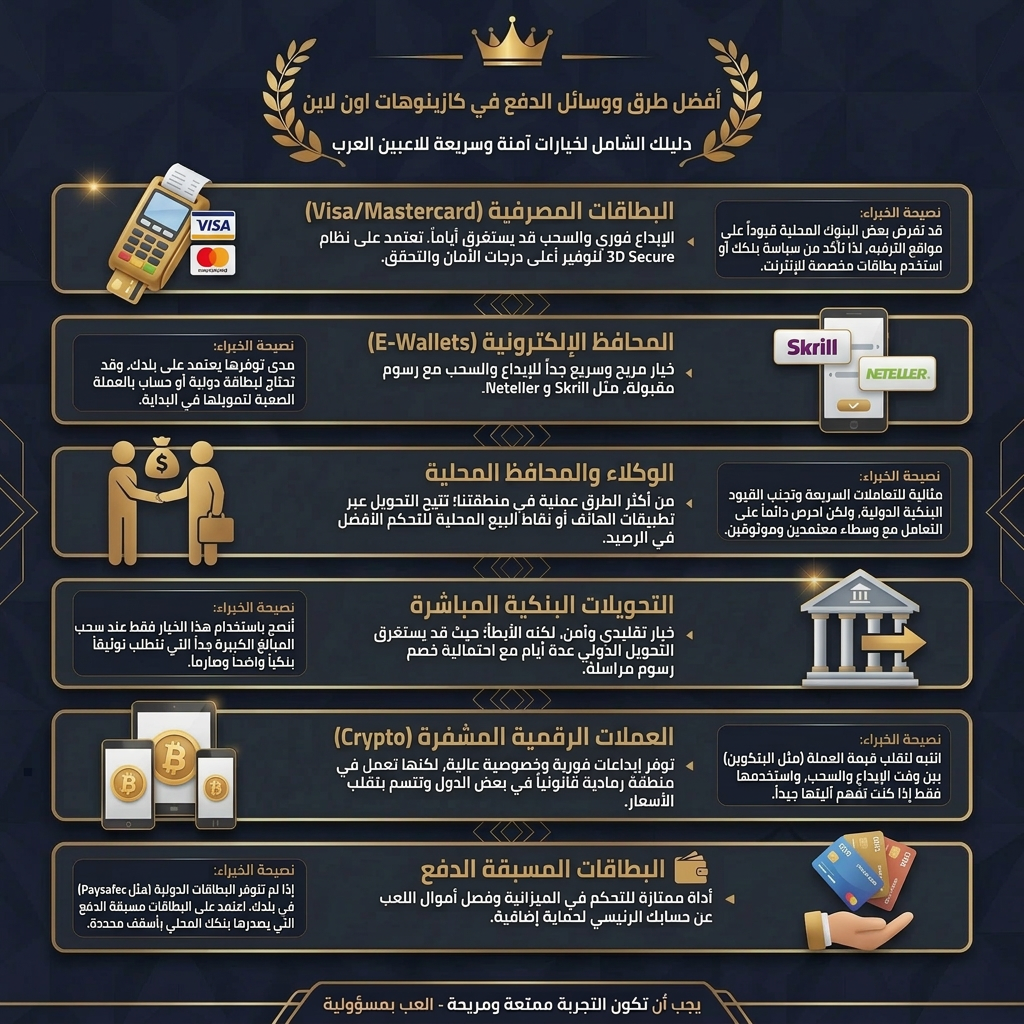 أحيانا أستخدم بطاقات مسبقة الدفع على بعض المواقع، لكنني أحذر دائما من رسوم التحويل ومدة السحب وسمعة الكازينو قبل إيداع أي مبلغ، وأشجع على قراءة الشروط والأحكام بدقة لتجنب أي مشاكل.