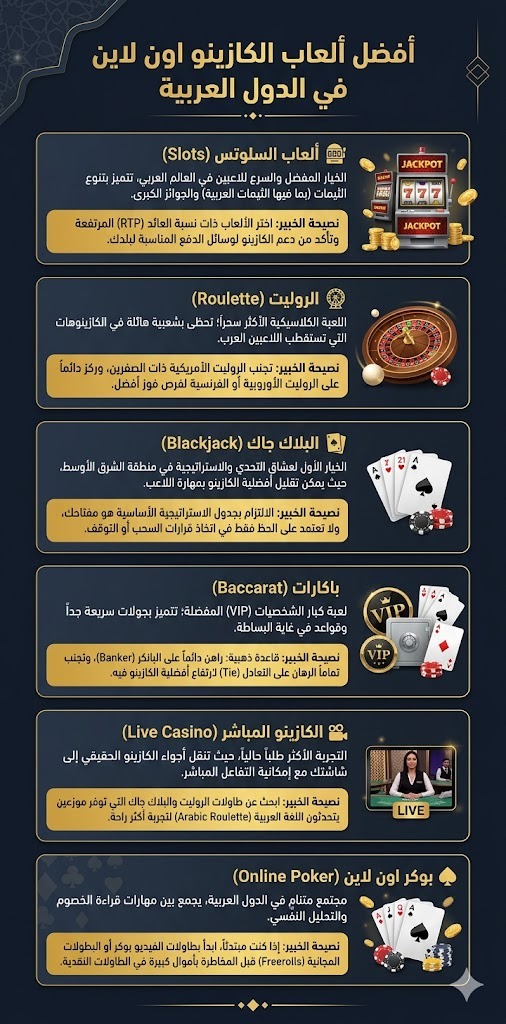 أثناء مراجعتي لمواقع كازينو اون لاين، أبحث عن ألعاب الكازينو المباشر من شركات مثل Evolution وPlaytech، لأنها تقدم جودة تصوير عالية وطاولات متنوعة، وبعضها يوفر موزعين يتحدثون العربية في أوقات محددة.