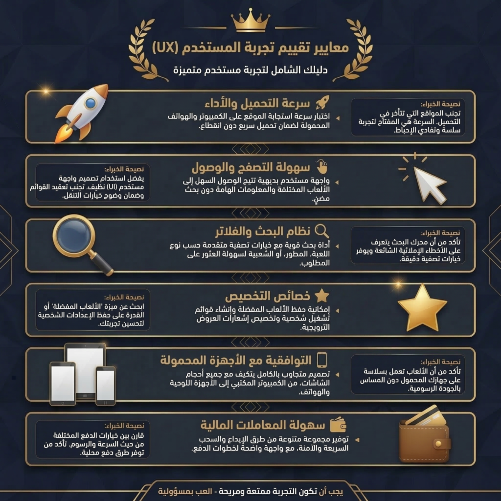 عند اختيار كازينو إنترنت مناسب للاعبين في الإمارات العربية المتحدة، أعتمد على منهجية واضحة تضم عدة معايير مهمة، ولا أعتمد فقط على المزايا الظاهرة أو الإعلانات.